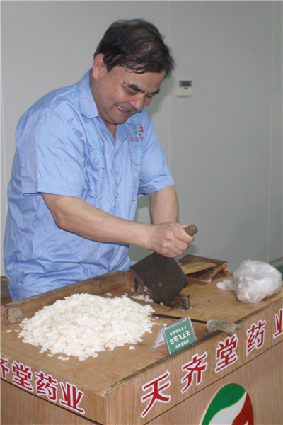 樟树中药炮制可分为鉴别、抖择、切制、炮制、加工和贮藏,其中鉴别俗称“识药”,即凭手、眼、口、鼻、耳分辨药材的真伪、质级,不易区分的药材则辅以水浸、火烧来鉴定;抖择即对药材进行选净、分级,俗话说“药抖干层灰”;切制有洗药、润药和切制,润药最为关键,当地老药工有“七分润工,三分切工”的说法,同时讲究“刀功”,各店号最佳刀工被称作“头刀”;炮制则是中心所在,也是最具特色的传统工艺,一般有水制、火制、水火共制三法,而以火制者居多;贮藏则将不同类型的药,分类、分地、分不同器物保管,贮藏前须按药材性质运用烘、焙、摊、晒等手法干燥处理。