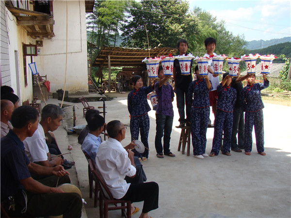“太平灯”源于一则民间故事,明朝万历年间铜鼓客家人流入全县,人口达13万之多,在春节期间喜耍“太平灯”,摆字“五谷丰登”、“天下太平”。不同时期摆字内容有所不同。“80年代”“大干四化”,现在有“新农村“等,表达了铜鼓县劳动人民不同时期的祝愿。