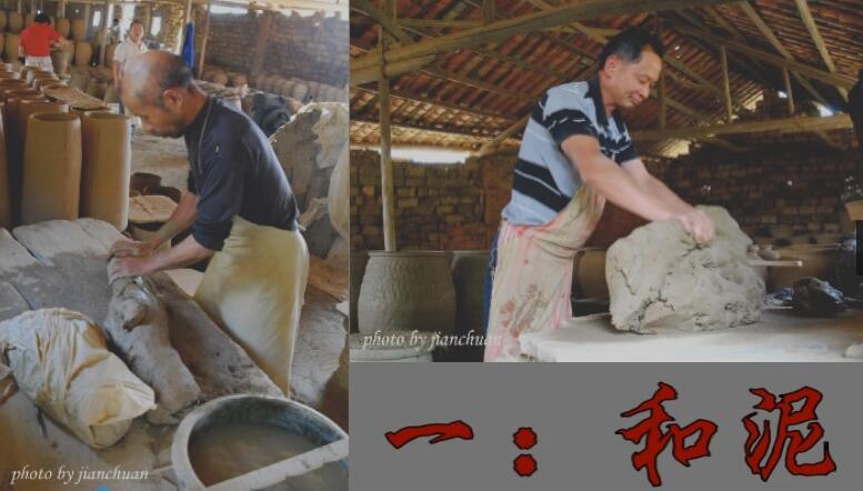 取土、手工捣碎、和泥、揉碾、搓条、盘条、加固胎壁、拍花、晾晒、上釉、装烧。整个流程从取土开始至成品件为期一周。