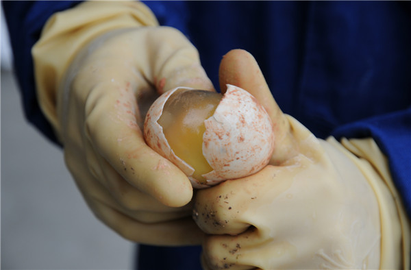 袁州松花皮蛋加工工艺流程主要是:冲料→鲜蛋下缸和灌料→技术管理、成熟和出缸→检验分级→包装杀菌贮存。